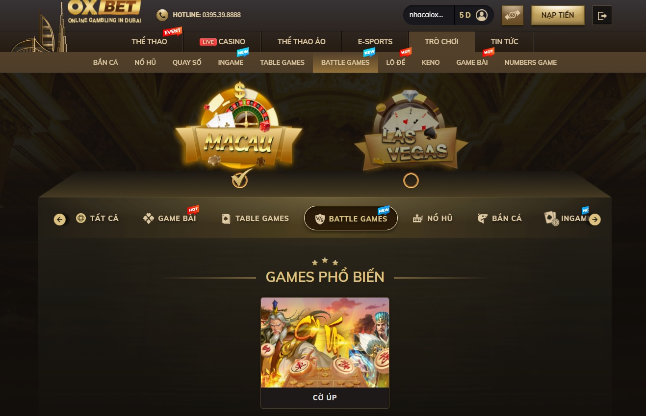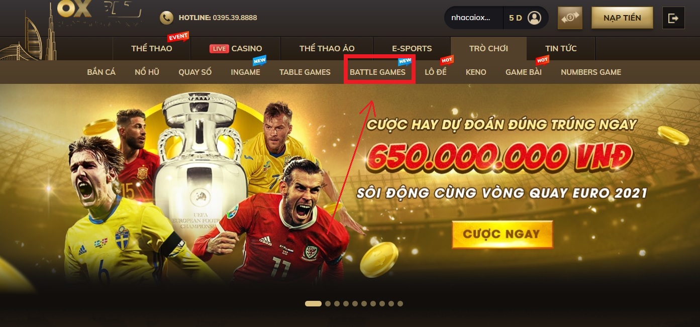 - Bước 1: Sau khi đăng nhập vào trang chủ của nhà cái Oxbet, chọn phần “Battle Games”.