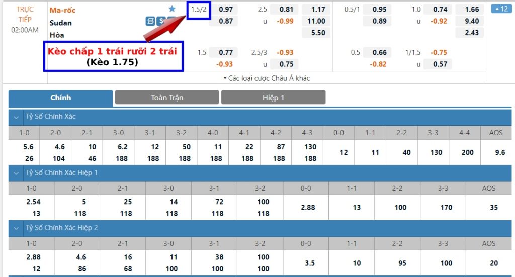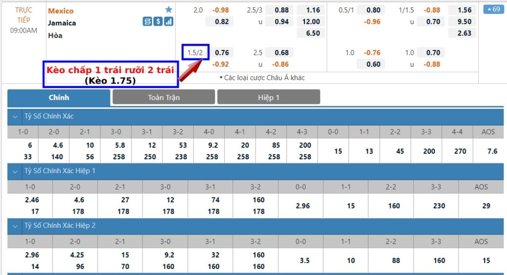 Cách tính kèo chấp 1 trái rưỡi 2 trái dễ hiểu nhất