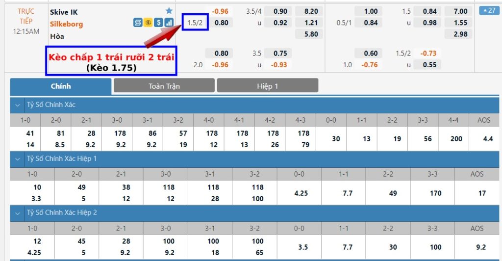 Ví dụ 2 về kèo 1.75 và 1 3/4 trái
