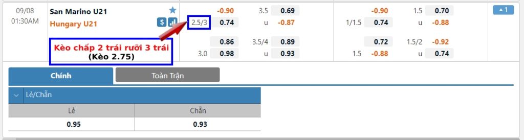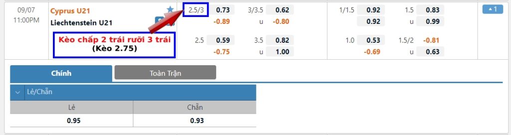Cách tính kèo chấp 2 trái rưỡi 3 trái dễ hiểu nhất