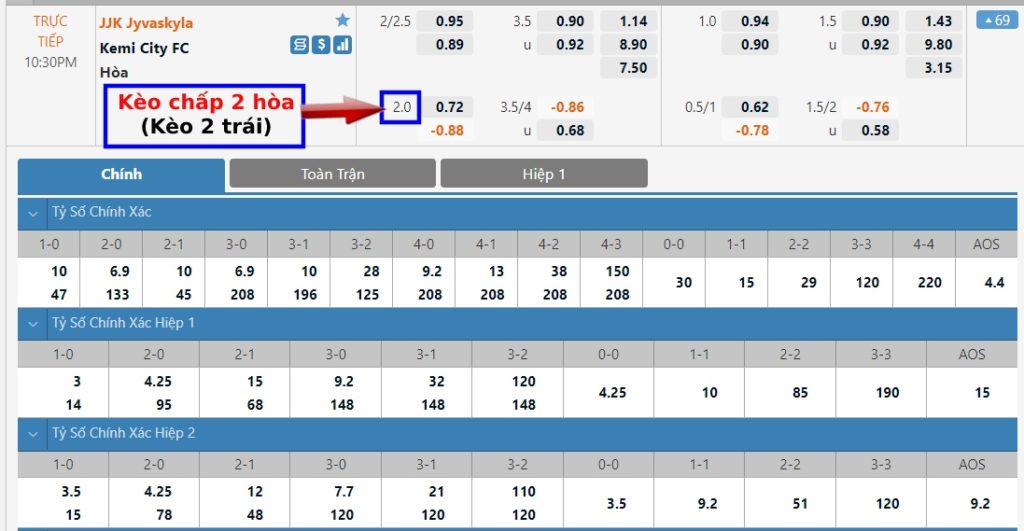 • Đội mạnh hơn thắng đội yếu hơn với cách biệt 2 bàn. Khi đó bạn chọn cửa trên hoặc dưới đều coi là hòa kèo. Anh em được hoàn lại vé cược.
