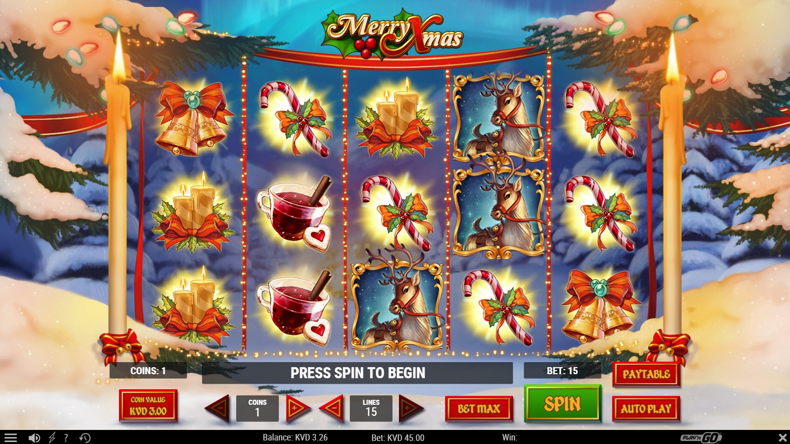 Bảng kết quả trong game Merry Xmas của Play’n Go có hình dạng 3×5 cùng mức trả thưởng phải nói là cực hào phóng. Nếu may mắn thì bạn sẽ trúng được phần thưởng cao nhất là x150 lần mức cược cùng vô vàn hệ số nhân thưởng x3 x4.