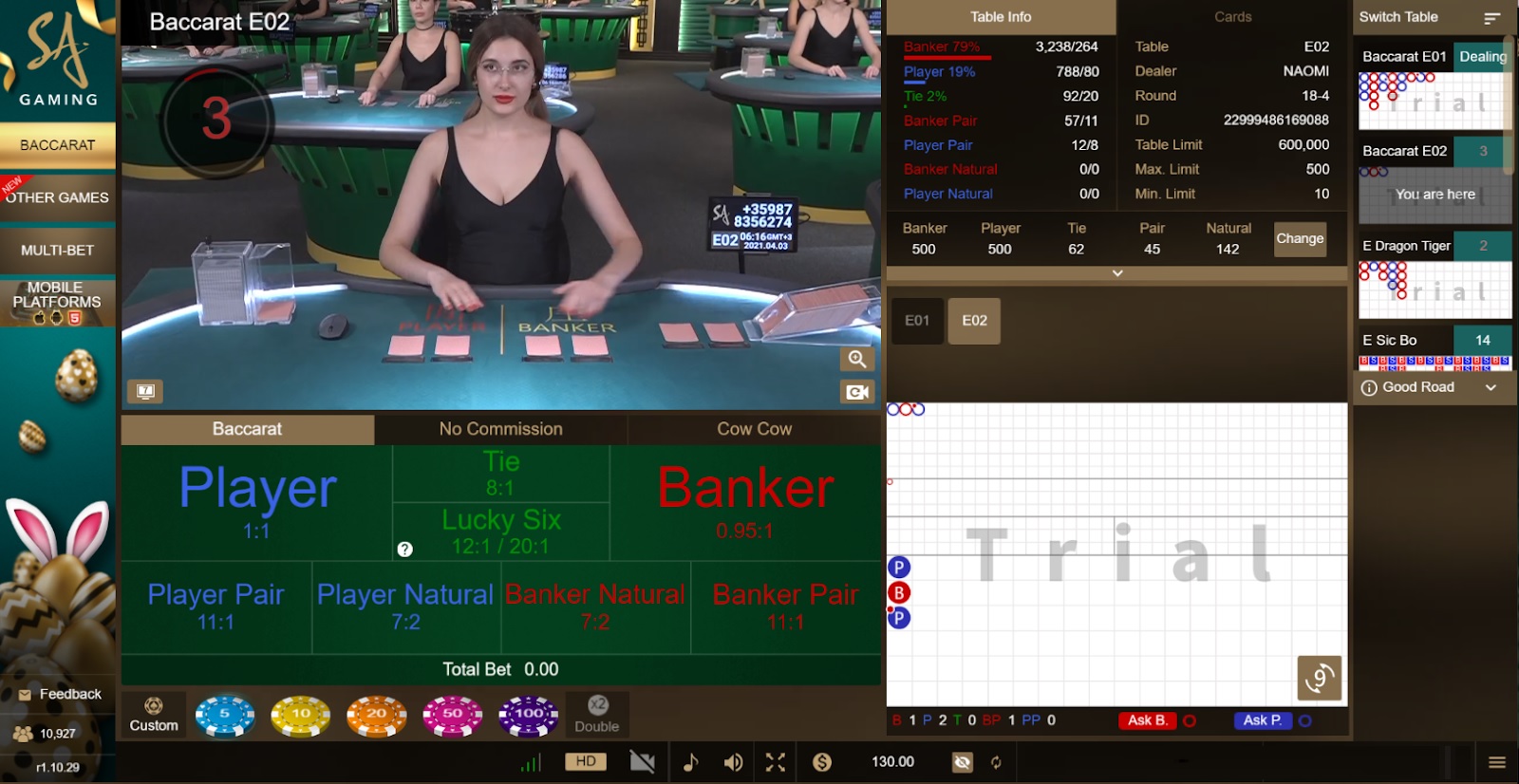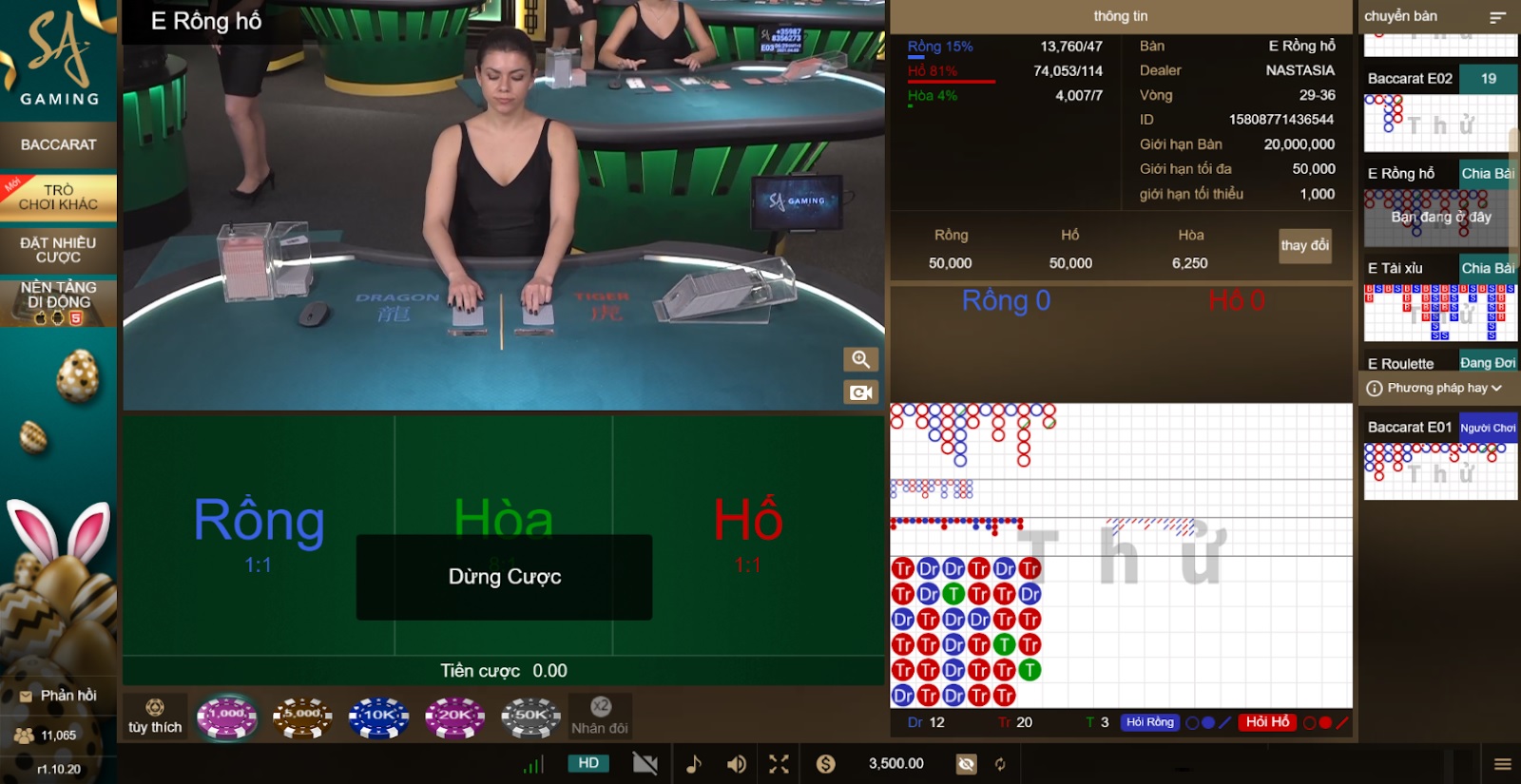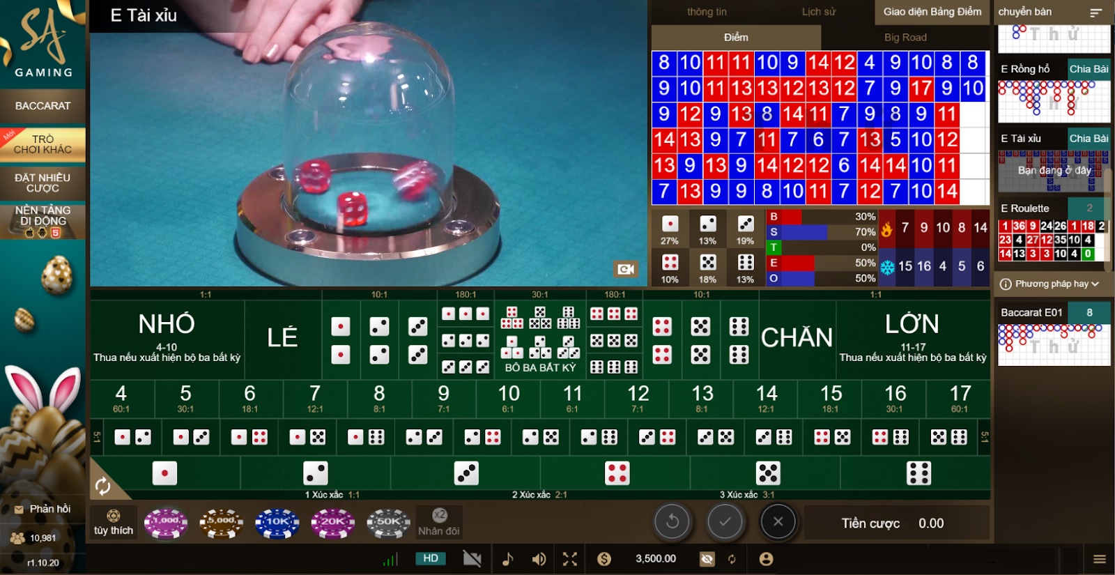 Các game Casino của SA Gaming được chạy trên nền tảng HTML5 nên load rất nhanh, đi kèm với đó là nhiều tính năng đặc biệt như Multi-Bet (đặt thêm cửa cược) và thống kê kết quả trò chơi đầy đủ chính xác 100%. Ngoài ra thì các game của SA Gaming còn được tối ưu trên các thiết bị di động, nếu chơi trên điện thoại thì còn mượt hơn là chơi trên máy tính.